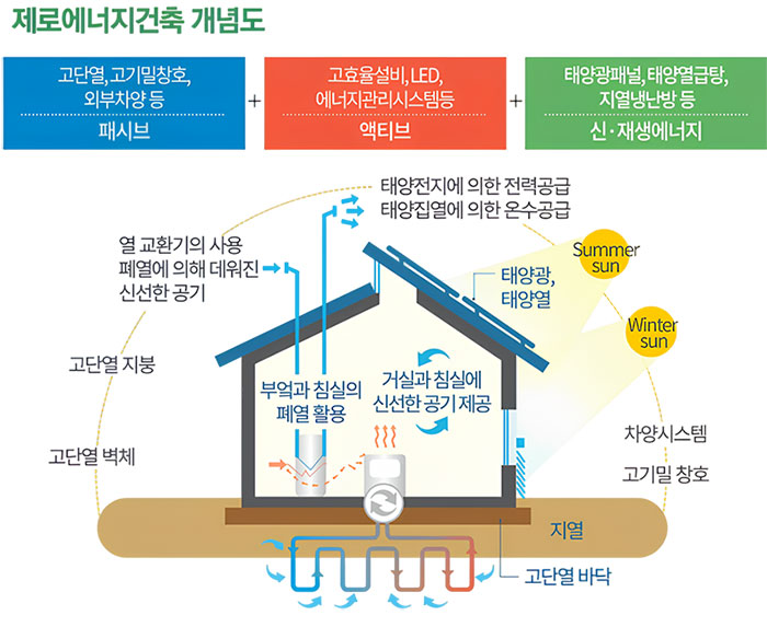 건물의 설계도서를 통하여 연간 단위면적당 1차에너지소요량과 에너지자립률을 평가하여 6개 등급(ZEB Plus~5등급)으로 인증